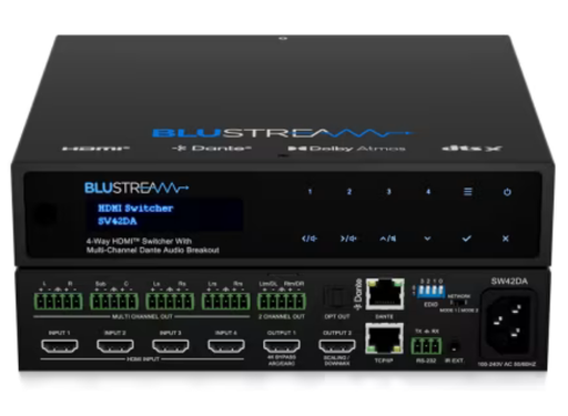 BluStream 4-Way HDMI Switcher with Multi-Channel Dante Audio Breakout | SW42DA