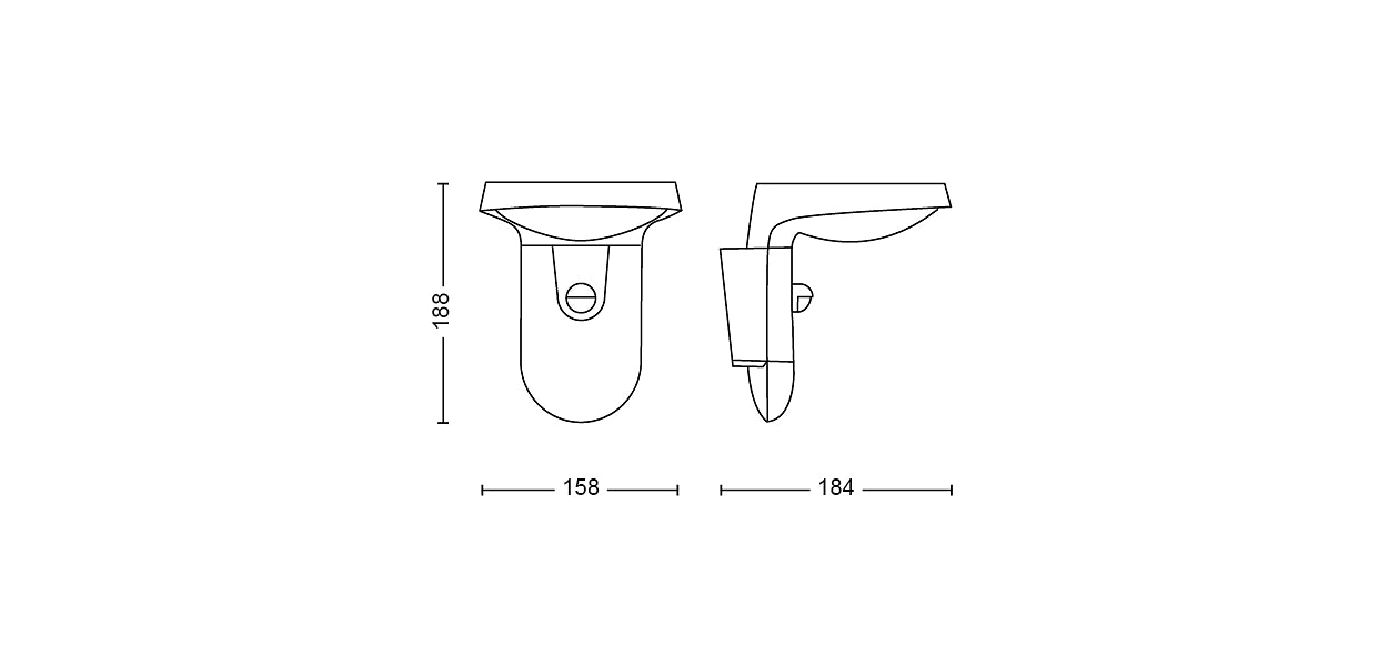 Specification Details Brand Non-Connected SKU 10378311 Manu Part # 929003260301 EAN 8719514476912 Features No wiring required Yes IP44 – weatherproof Yes High-quality aluminium and superior synthetics Yes 5-year warranty on LED system Yes Long lifetime up to 50,000 hours Yes Ultra-efficient solar Yes Dual-brightness light Yes Motion and dusk-to-dawn sensor integrated Yes Design Premium quality material Yes Light source replaceable No International Protection (IP) code IP44 Type Outdoor wall lighting Suitable location Garden, Patio Product colour Black Integrated sensors Day/night sensor Protection features Corrosion resistant, Dust resistant Suitable for outdoor areas Facade Weatherproof Yes Weight & Dimensions Depth 184 mm Length 184 mm Height 188 mm Width 158 mm Other Features Included bulb energy efficiency class (old) ALED module warranty LED module warranty 5 year(s) Packaging Data Package depth 175 mm Quantity per pack 1 pc(s) Package height 20 mm Package net weight 650 g Package gross weight 1 kg Lamps Fitting/cap type Non-changeable bulb(s) Colour temperature (min) 3000 K Total luminous flux 255 lm Bulb type LED Luminous flux 255 lm Color Rendering Index (CRI) 80 Colour temperature (max) 3000 K Packaging Content Centerpiece included No Adjustable spot head No Ergonomics Fixture dimmable No Diffused light effect Yes Dimmable No Power Battery voltage 4 V Power source type Solar AC input voltage 4 V Energy efficiency class AA AC input frequency 4 V Technical Details Net weight 650 g -