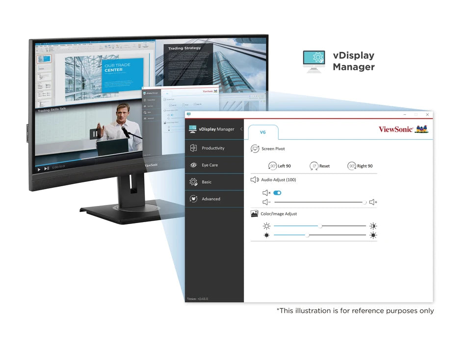 Reduce your eye strain and maintain fresh-feeling eyes with ViewSonic Eye ProTech. The Flicker-Free technology eliminates screen flickering, while the Blue Light Filter minimises harmful blue light from extended viewing periods, ensuring comfortable screen viewing.